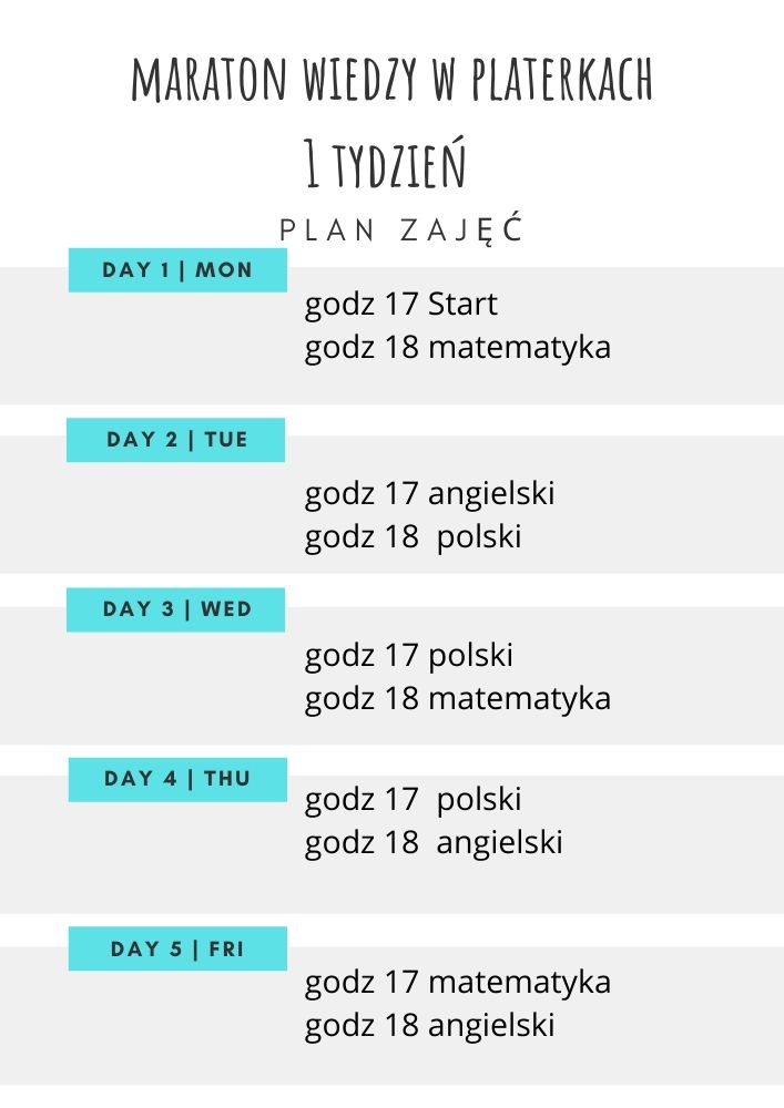 Zapraszamy uczennice i uczniów klas ósmych na PLATERKOWY MARATON WIEDZY.